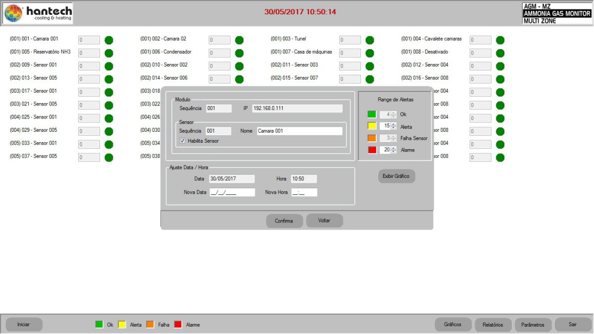 Limites: Central AGM - 48 sensores, Sistema supervisorio (SCVG) - 112 sensores*